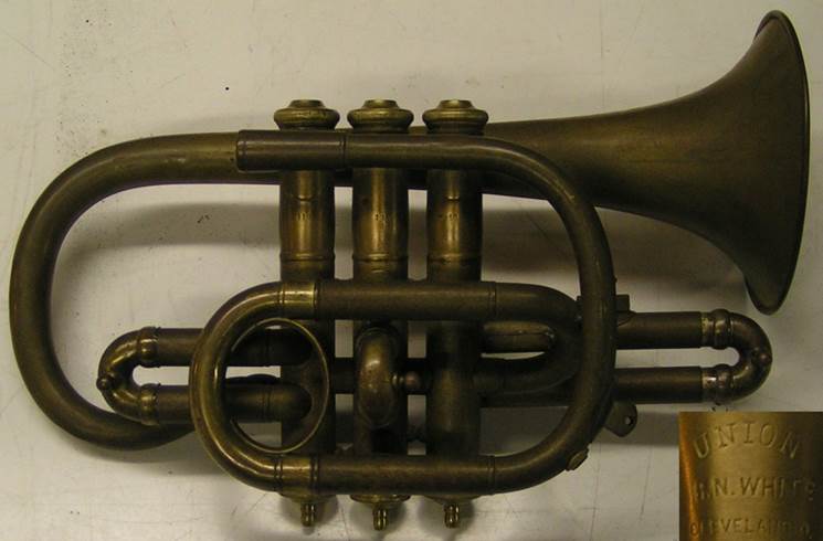 Bohland & Fuchs #9 “Union – HN White Sole Agent” stencil Bb cornet in high pitch, circa 1895
