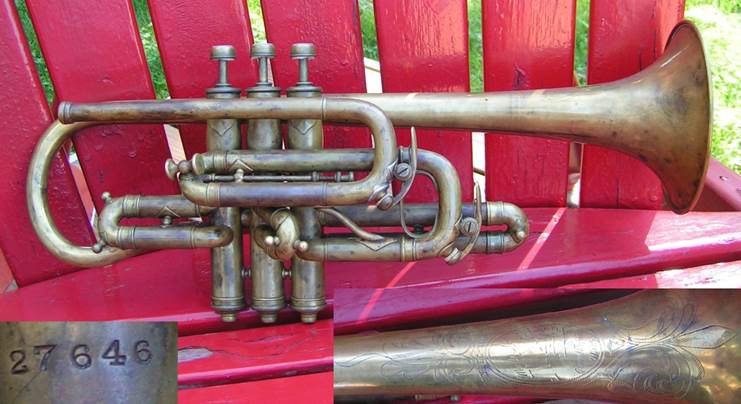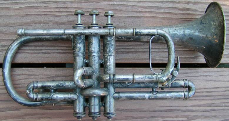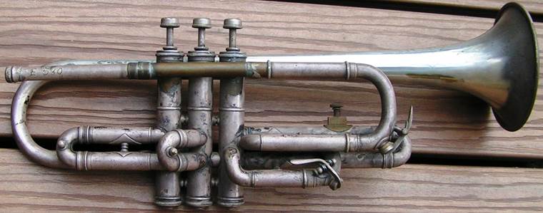 Bohland & Fuchs #13 “Kleartone” stencil Bb/A trumpet for 1892 Russian immigrant Mark J. Kalashen at 173 Bowery NYNY, circa 1932