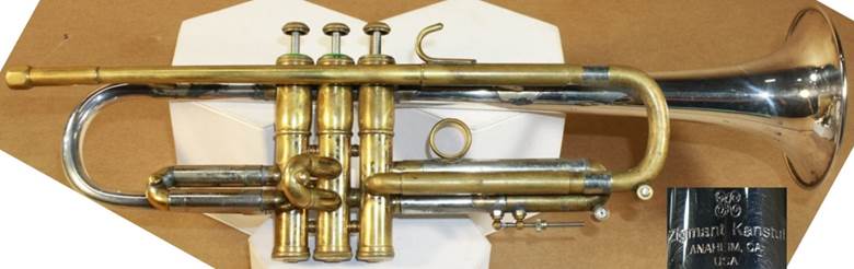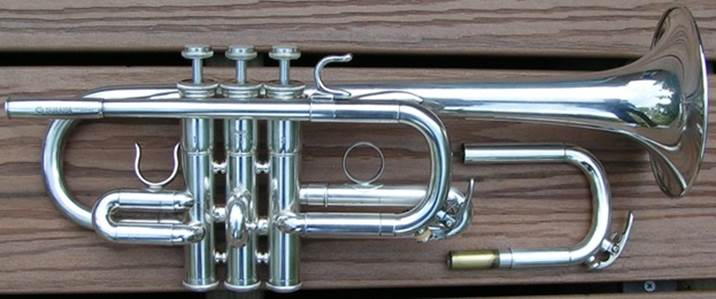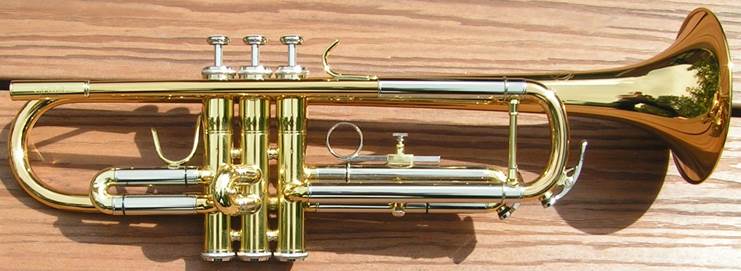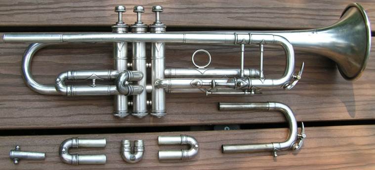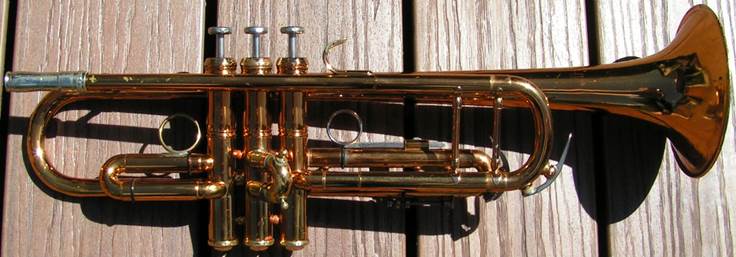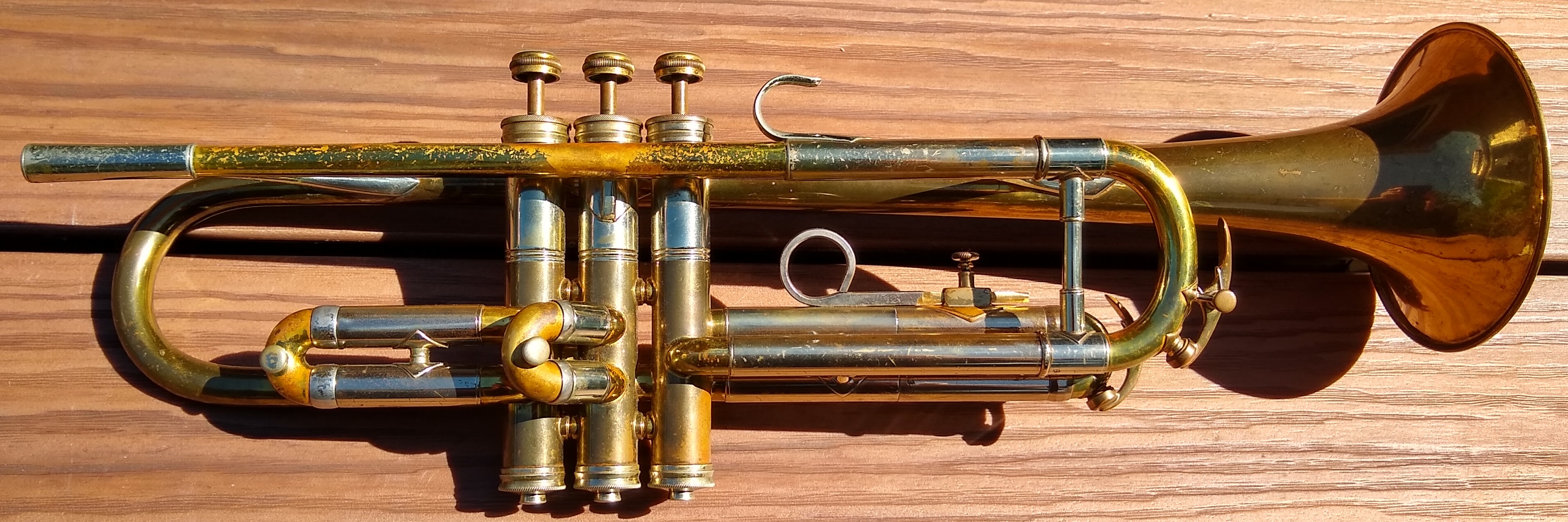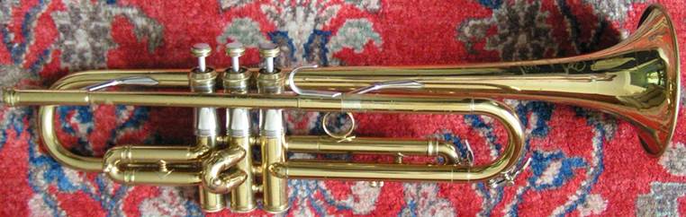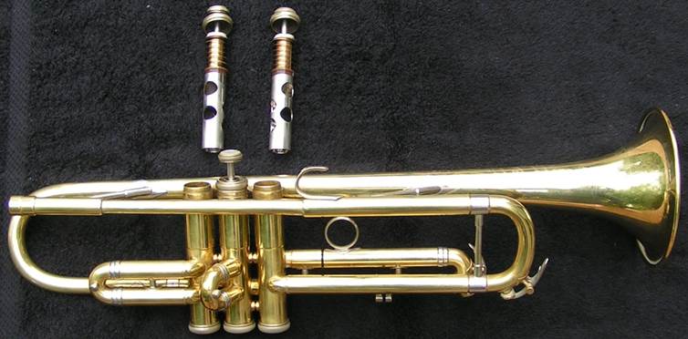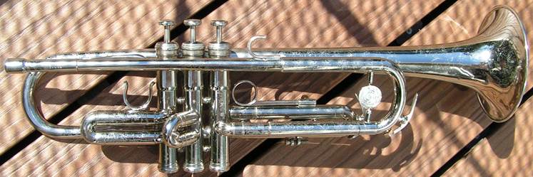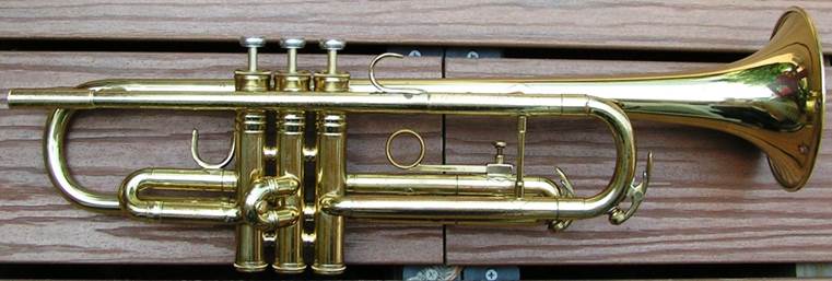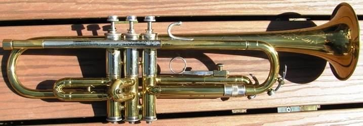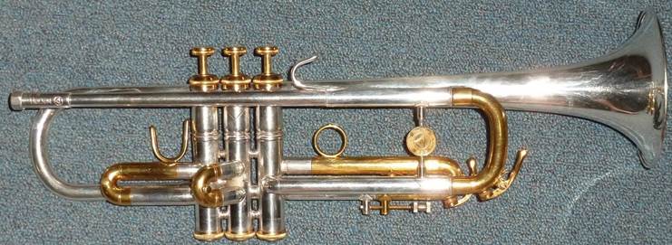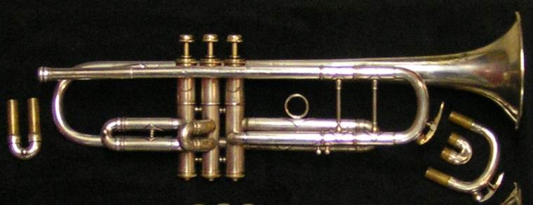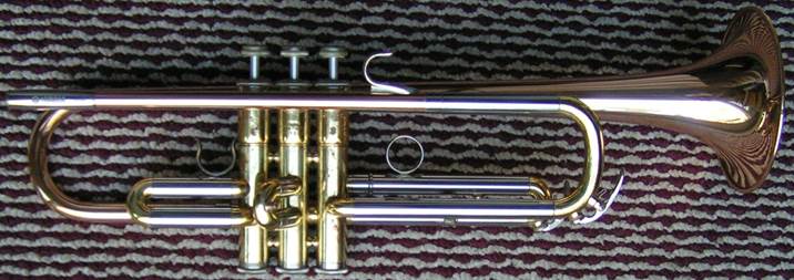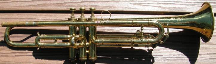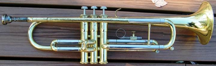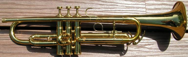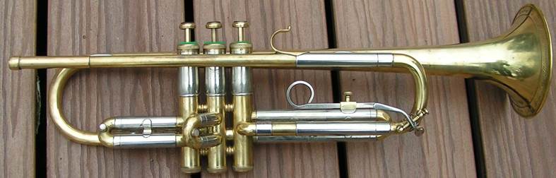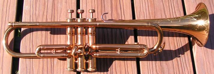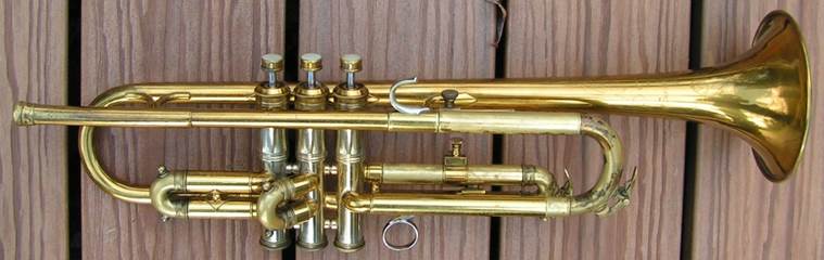 Bb trumpet, modified with Autrey leadpipe and Harmonic Balancer weights on