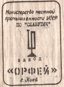 In quotes below the logo, the document carries “Orpheus”, which appears similarly emphasized throughout. This is an actual brand name. (The top of the page reads simply “Ministry of Local Manufacturing, USSR, at ‘Slavutych’”)