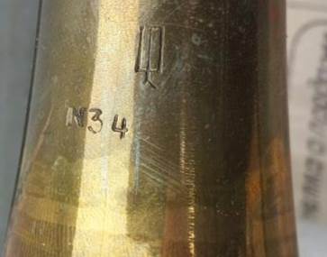 The bell markings on these horns reflect the systemic imperative to suppress maker and brand identity in their simplistic stamps of model and perhaps manufacture date codes.