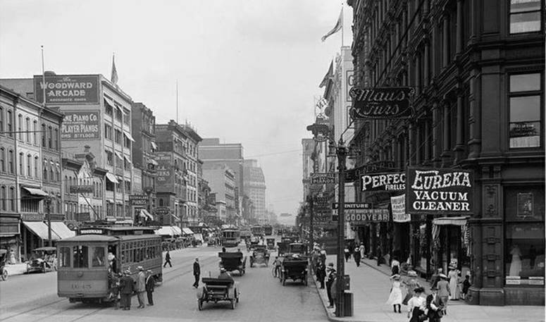 The second store site is roughly at the extreme left of this 1920s photo looking South on Woodward.